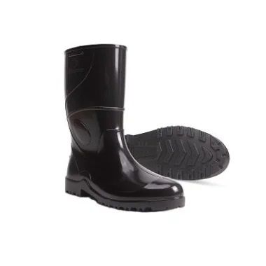 Bota impermeável produzida com composto polimérico de PVC, injetado em duas etapas (sola e cano) com fusão em uma peça só. Alta flexibilidade e com bom comportamento ao desgaste.